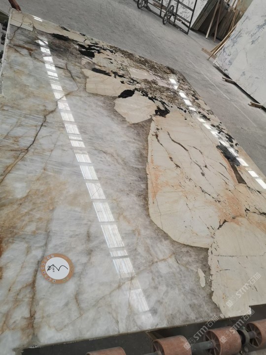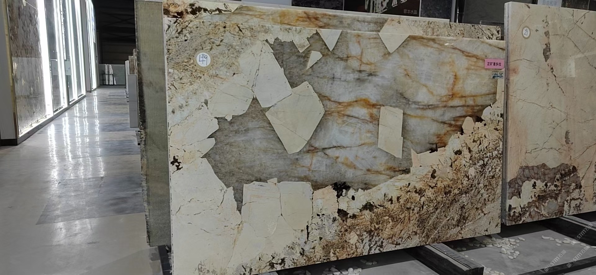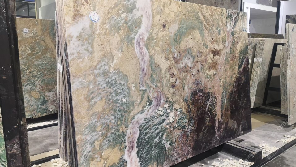 新景印象石畫館常年庫存玉石、奢石、山水畫,現(xiàn)貨大板近15萬平方,品種齊全,庫存豐富,可滿足不同客戶群各個價位板面需求。為客戶提供了更全面的選擇空間。未來,這里更將被打造成為華東地區(qū)天然背景石材選材中心。\