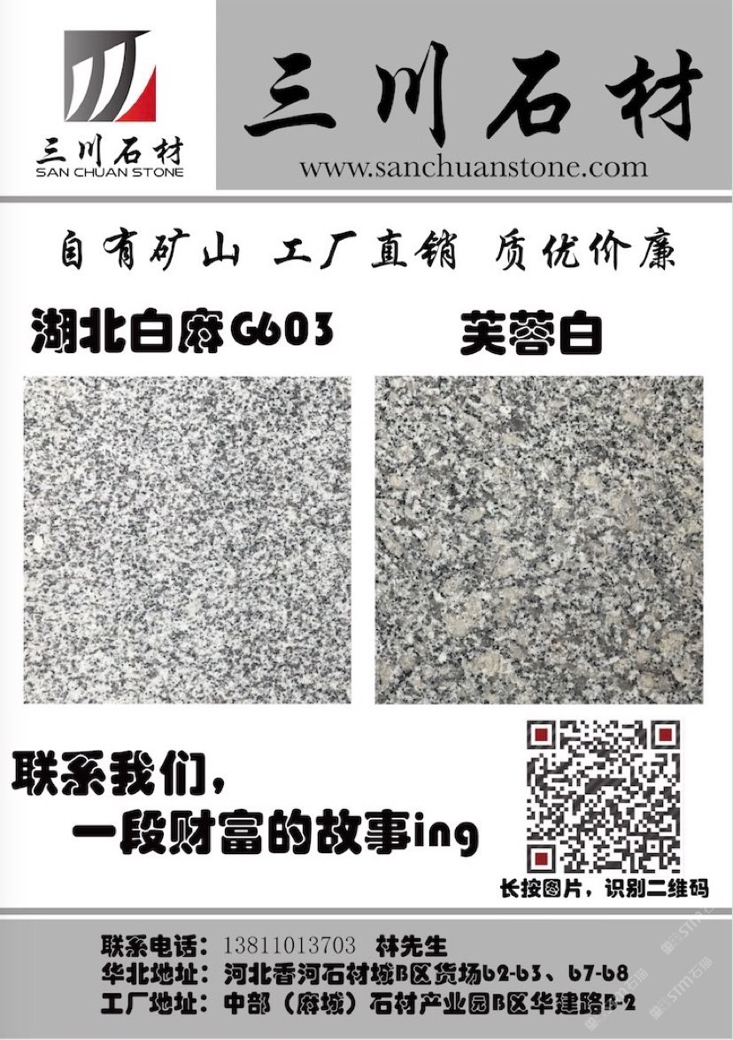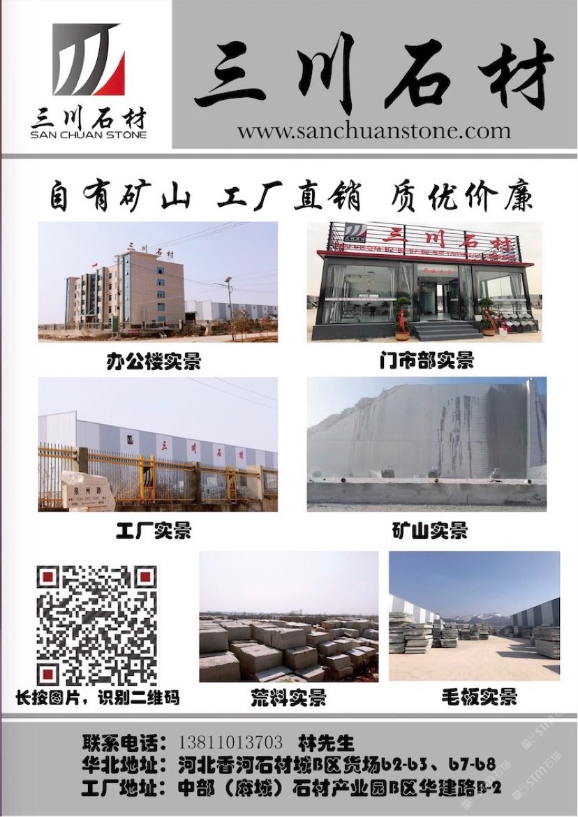 三川石材有限公司是一家專注于國內(nèi)石礦開采、加工及貿(mào)易的專業(yè)化公司,是湖北省麻城市知名石材企業(yè)之一。公司的創(chuàng)始人團隊從業(yè)始于1996年初,1998年在福建省羅源縣投資建廠,經(jīng)過近三十多年的發(fā)展,2013年將公司總部設(shè)在中部(麻城)石材循環(huán)經(jīng)濟產(chǎn)業(yè)園,下設(shè)河北、湖北、重慶、江西、浙江等幾大生產(chǎn)加工基地及銷售網(wǎng)點。