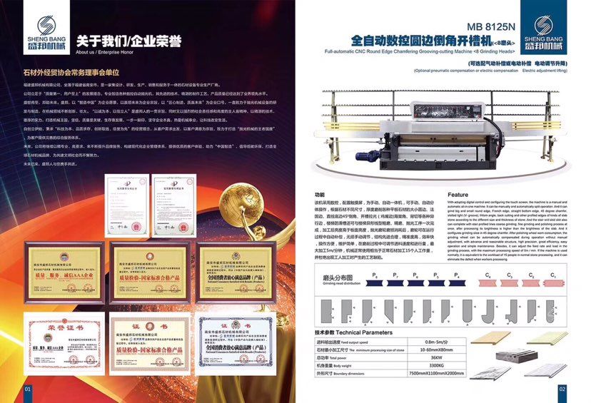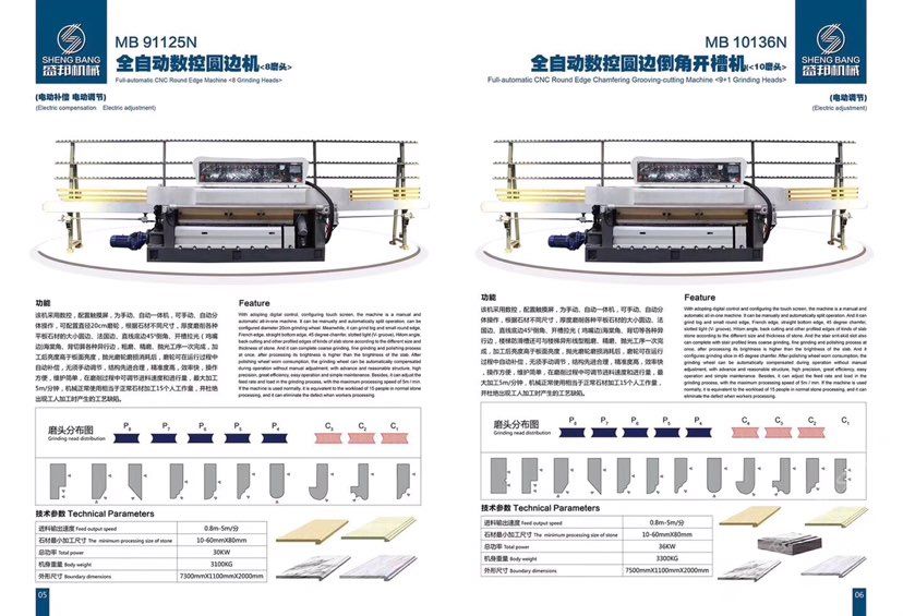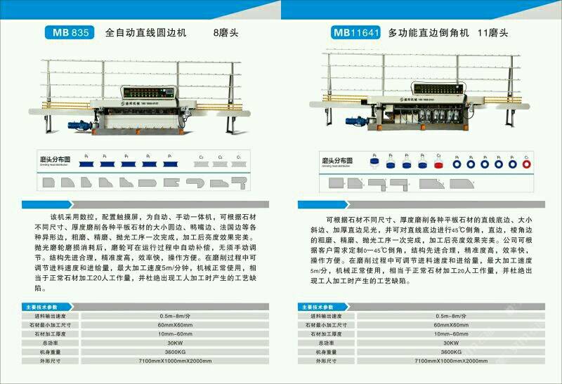 公司主營:‘’全自動數(shù)控圓邊機(jī)、全自動數(shù)控地腳線機(jī),多功能直邊倒角機(jī)’‘全自動直邊倒角機(jī)‘’全自動臥式磨邊機(jī)’也可根據(jù)客戶需求定制各種全自動石材加工機(jī)械!磨邊機(jī)、拋光機(jī)合二為一,粗磨、精磨、拋光一次完成,拋光后效果高于板面光潔度!拋光磨輪磨損消耗后,磨輪可在運(yùn)行過程中自動補(bǔ)償,無須手動調(diào)節(jié),不會產(chǎn)生手工操作中出現(xiàn)的工藝缺陷!結(jié)構(gòu)先進(jìn)合理!精準(zhǔn)度高,效率快,操作方便!維護(hù)簡單快捷! 盛邦機(jī)械團(tuán)隊期待與您攜手并進(jìn),為您降低加工成本,創(chuàng)造財富!使用我司全自動磨邊拋光機(jī)械成本每米:人造石每天按工作8小時計算,一分鐘可磨4米,8小時可磨1920米,每米成本0.4元,大理石8小時可磨1300米,每米成本0.6元,花崗巖8小時可磨9百多米,一分鐘可磨2米,每米成本0.8元,(成本含水電費(fèi),人工,磨輪損耗等) 操作簡便,雜工即可,精準(zhǔn)度高,無工藝缺陷,售后維護(hù)方便,簡單。歡迎到水頭鎮(zhèn)弘泰機(jī)械C區(qū)2號來考察試機(jī)。聯(lián)系人:方經(jīng)理18016666181