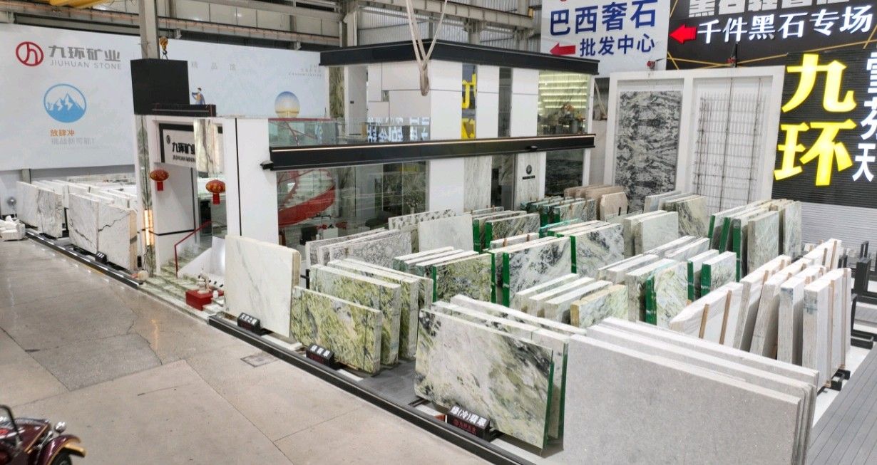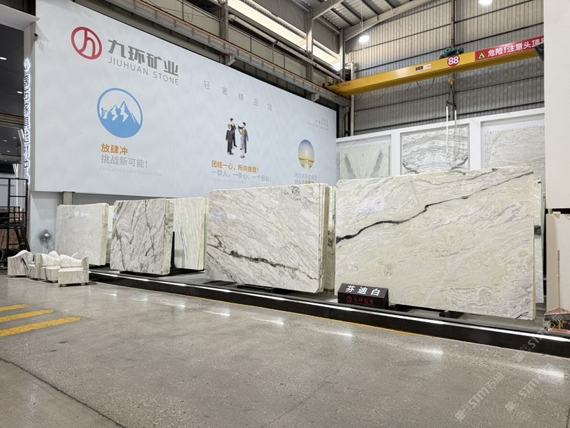 公司創(chuàng)建初期駐點(diǎn)于東升大板市場(chǎng),隨著市場(chǎng)需求,不斷進(jìn)行戰(zhàn)略布局,2016年駐點(diǎn)高時(shí)大板市場(chǎng),2017年駐點(diǎn)藝興大板市場(chǎng),同時(shí)期增加澳磊門店,2018年,九環(huán)增加遠(yuǎn)達(dá)專場(chǎng),擁有數(shù)百個(gè)架子位,憑借優(yōu)質(zhì)服務(wù)深受客戶認(rèn)可與信賴。2019年,九環(huán)于順盛增加加工點(diǎn),主要生產(chǎn)“水晶木紋”,年產(chǎn)量達(dá)15萬(wàn)平方米。該年底順勢(shì)而上,增加均利廠、新寰宇廠及振南廠三個(gè)石材加工廠,并不斷拓寬市場(chǎng)品類,由原先單一的“水晶木紋”,又增拓“印度藍(lán)金沙”與“土耳其星月白”兩個(gè)大理石品種,年產(chǎn)量接近30萬(wàn)平方米,公司經(jīng)營(yíng)得到進(jìn)一步優(yōu)化。2020年九環(huán)石業(yè)進(jìn)軍南翼點(diǎn),新增“卡索灰”及“古堡藍(lán)”兩個(gè)大理石品種,擁有自己的大型礦山開(kāi)采權(quán),自主開(kāi)采銷售,產(chǎn)品種類大幅度增加,業(yè)務(wù)領(lǐng)域進(jìn)一步拓展。2021年至今,九環(huán)石業(yè)新增澳盛點(diǎn),新增品種“卡地亞灰”包礦。至此,九環(huán)石業(yè)在“世界石都”水頭戰(zhàn)略版圖囊括了澳盛、新寰宇、東升、遠(yuǎn)達(dá)等駐點(diǎn),具備良好的區(qū)位優(yōu)勢(shì),發(fā)揮著重要的協(xié)同效應(yīng)。\