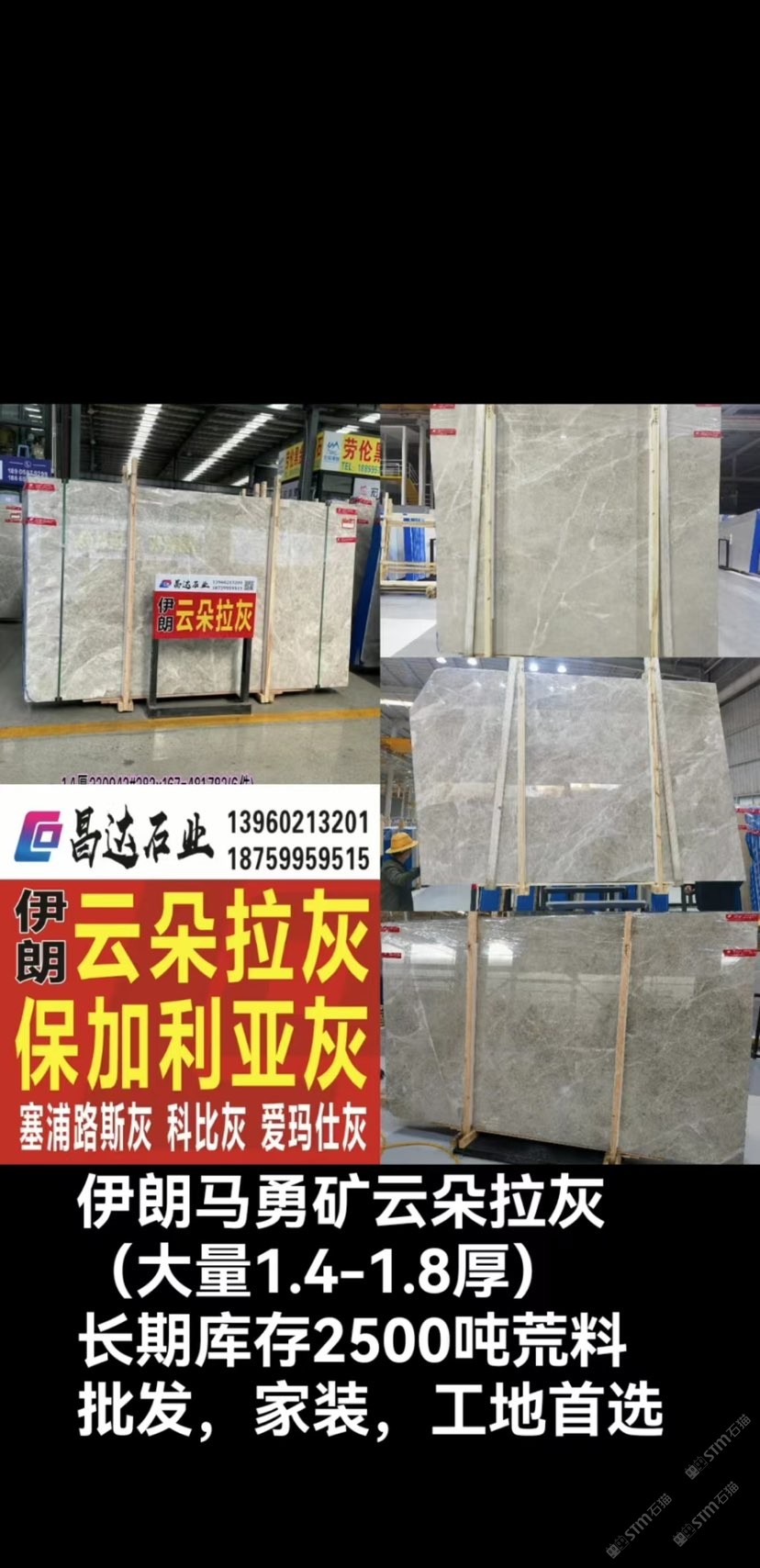 【昌達(dá)石業(yè)】擁有20年歷史。秉承著 “誠(chéng)信、務(wù)實(shí)、合作、共贏”的經(jīng)營(yíng)理念, 打造 《伊朗?埃及》 礦山直銷專場(chǎng),為客戶創(chuàng)造更高的價(jià)值。是您值得信賴的長(zhǎng)期合作伙伴! 伊朗系列:?老礦歐典 ?伊朗云多拉灰?保加利亞灰 長(zhǎng)期備有:1.8cm足 埃及系列:金碧 金線 埃米 撒哈嘛 瑞典 亞洲米黃 長(zhǎng)期備有1.8cm,2.3cm,3cm,5cm及大量荒料。 價(jià)格實(shí)惠!歡迎您來(lái)電咨詢!