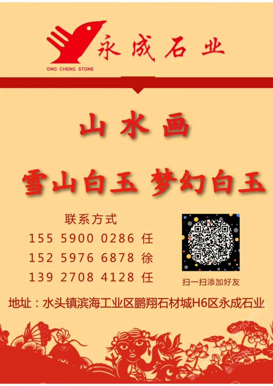 公司主營:雪山白玉,夢幻白玉,仙女散花,山水畫等,以及各種花崗巖