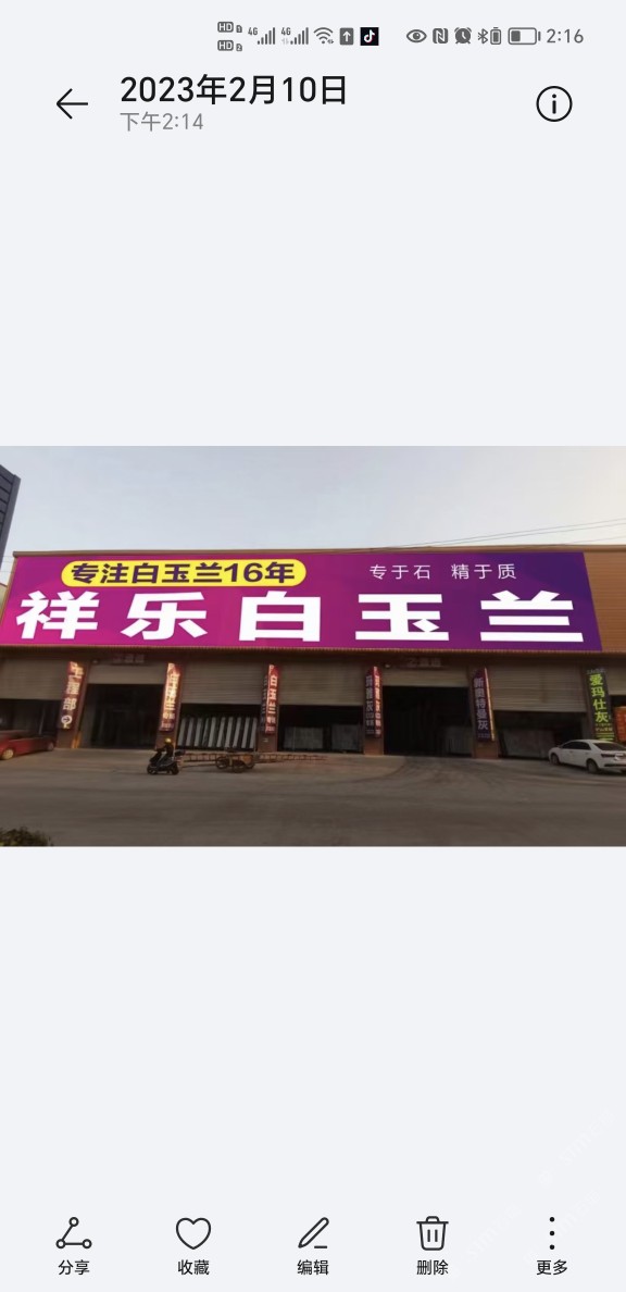 專營白玉蘭、閃電,月均到貨量3000噸,大板庫存量白玉蘭10萬平方,閃電3萬平方