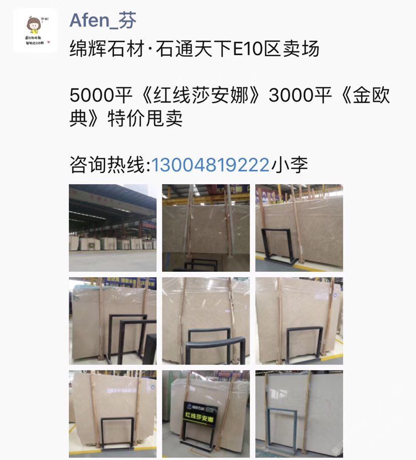 主營《紅線莎安娜》《美尼斯灰·新古堡灰》《金歐典》,每月持續(xù)到貨,日均庫存大板20000平,荒料2000噸??蔀榕l(fā),零售,工程單提供各種板面質(zhì)量/規(guī)格/價位需求!