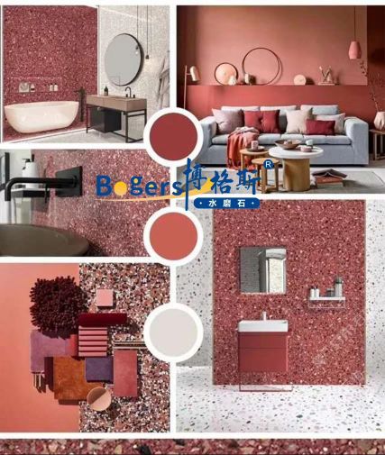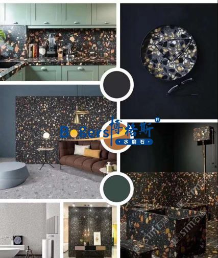 隨著工藝水平和材料品質(zhì)的巨大突破,新型預(yù)制無機(jī)水磨石采用環(huán)保型無機(jī)粘劑,不含樹脂膠水等,通過高頻高壓抽真空震動(dòng)壓制而成,硬度更高更耐磨,施工更靈活方便。憑借其時(shí)髦大氣的設(shè)計(jì)呈現(xiàn)出一種慢慢的感