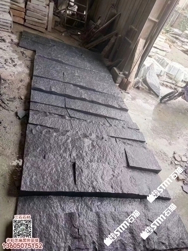 老礦G654芝麻黑石材自然面背景墻劈裂石凹凸面墻磚