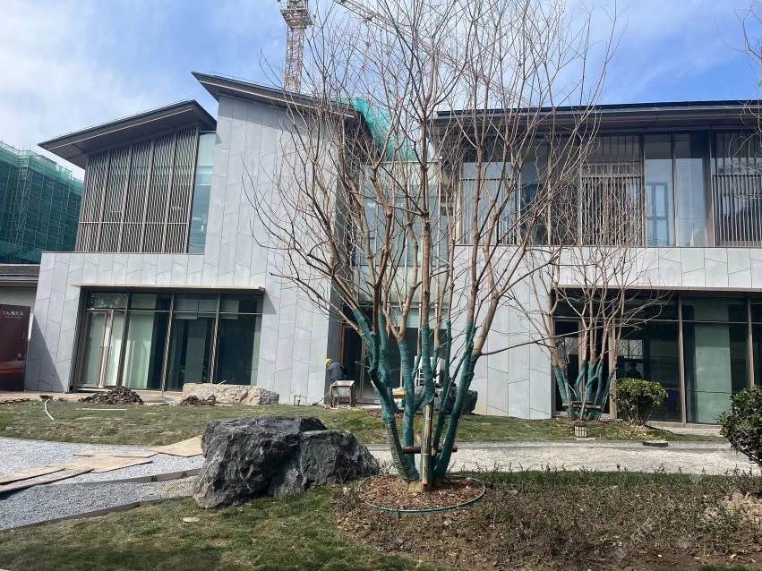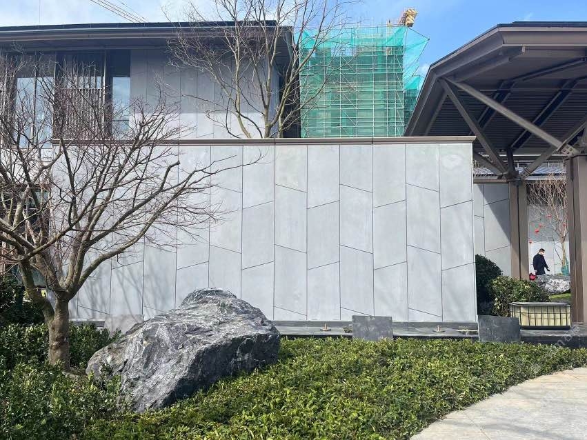無機灰洞石,啟東城投大雅風華售樓處外墻應用案例