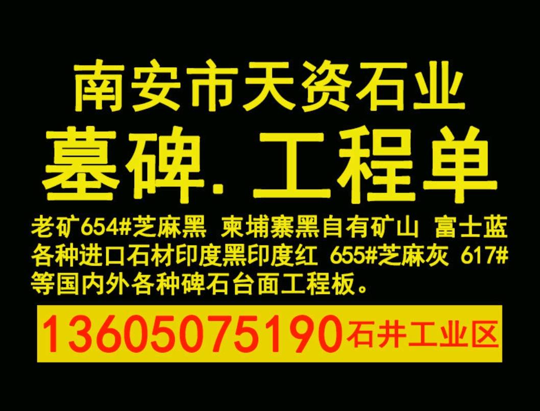 發(fā)布信息: 天資石材連總13605075190主營:老礦654#芝麻黑、柬埔寨黑、自有礦山、富士藍(lán)、各種進(jìn)口石材印度黑印度紅、655#芝麻灰、617#等國內(nèi)外各種碑石臺面工程板