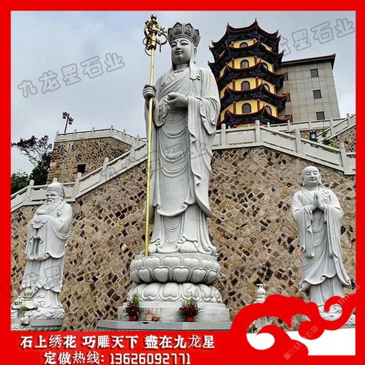 發(fā)布信息: 石雕地藏王座像 地藏王菩薩石刻像 廠家定制——九龍星石業(yè)。 石雕地藏王座像以一頭形似獅子的怪獸為坐騎的,名號曰:“諦聽”。諦聽又稱“獨(dú)角獸”,“地聽”,“善聽”,乃九華山鎮(zhèn)山之寶,相傳為金地藏菩薩坐騎。地藏王菩薩石刻像一般都是以光頭或者戴個(gè)五佛冠,也就是法師常戴的帽子。地藏王菩薩還有一個(gè)大的特點(diǎn)就是右手會(huì)有一根禪杖;左手當(dāng)胸棒有一顆寶珠。 石雕地藏王座像或稱地藏王菩薩,曾音譯為“乞叉底蘗沙”。因其“安忍不動(dòng)如大地,靜慮深密如秘藏”,故名地藏。為佛教四大菩薩之一,與觀音、文殊、普賢一起,深受世人敬仰。以其“久遠(yuǎn)劫來屢發(fā)弘愿”,故被尊稱為大愿地藏王菩薩。