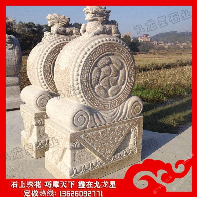 發(fā)布信息: 石雕圓形抱鼓石 門(mén)墩抱鼓石圖片及價(jià)格——九龍星石業(yè)。 石雕圓形抱鼓石的方圓有著不同的寓意,在古代,方形的門(mén)墩多為文官使用,圓形的門(mén)墩多為武官使用。門(mén)墩借助人物、草木、動(dòng)物、工具、寓言、幾何圖案,石頭抱鼓石上面的瑞獸表達(dá)了四合院的建筑者們希望長(zhǎng)壽、富貴、驅(qū)魔、夫妻美滿、家族興旺的美好心愿。獅和世諧音,雕九只獅子的圖案是九世同居,表示合家團(tuán)聚、同堂和睦的祝愿。 石雕圓形抱鼓石上面的瑞獸有獅子、麒麟、大象等靈獸。古代,不同地位官階等級(jí)的門(mén)戶擺放的抱鼓門(mén)石是不同的,文官用書(shū)箱形、武官用獸吻形,而古代住所高管門(mén)前門(mén)墩石的石獅子等靈獸一般都比較大,象征著地位和財(cái)富。