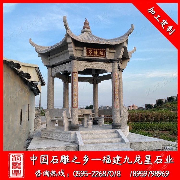 發(fā)布信息: 大理石涼亭廠家選九龍星石業(yè)18959798969。九龍星石業(yè)從事石雕行業(yè)二十多年,常年批發(fā)石雕涼亭、石亭子,款式多樣,價(jià)格合理,工期快。 石雕涼亭我們也成它為石材涼亭、石頭涼亭、石亭子。石雕涼亭樣式很多九龍星石業(yè)小編總結(jié)大概可以分為兩種:仿古中式石雕涼亭和簡(jiǎn)約歐式風(fēng)格石雕涼亭。 石雕涼亭廠家在加工制作時(shí)選用的材料多為大理石、芝麻黑、芝麻白、本山石等石料。 “亭”與停同音,停留也,人們休憩的場(chǎng)所。涼亭在我國古代已經(jīng)存在。周代時(shí)期,那時(shí)候人們建造涼亭是在邊防要塞地區(qū),以小堡壘的形式。到魏晉南北朝時(shí)期,建造為休憩的亭子,也是大約從這時(shí)候涼亭做為一處休憩的場(chǎng)所走進(jìn)人們的生活。
