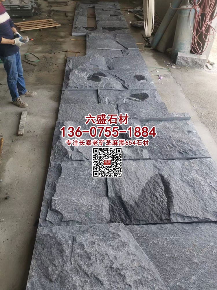 福建G654花崗巖新老礦芝麻黑石材火燒板荔枝板地鋪