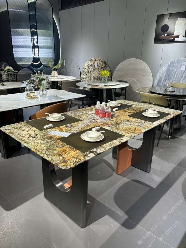 發(fā)布信息: 實木結(jié)合五金奢石餐桌:鉑金鉆長桌#水頭奢石家居中心
