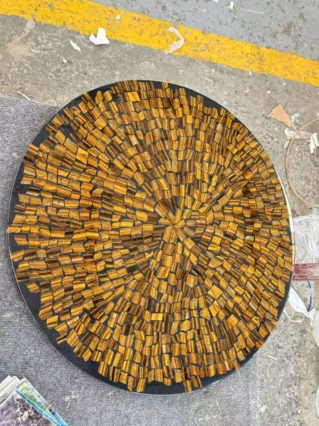 定制虎眼石家具臺面,半寶石臺面,寶石家具鑲嵌面板