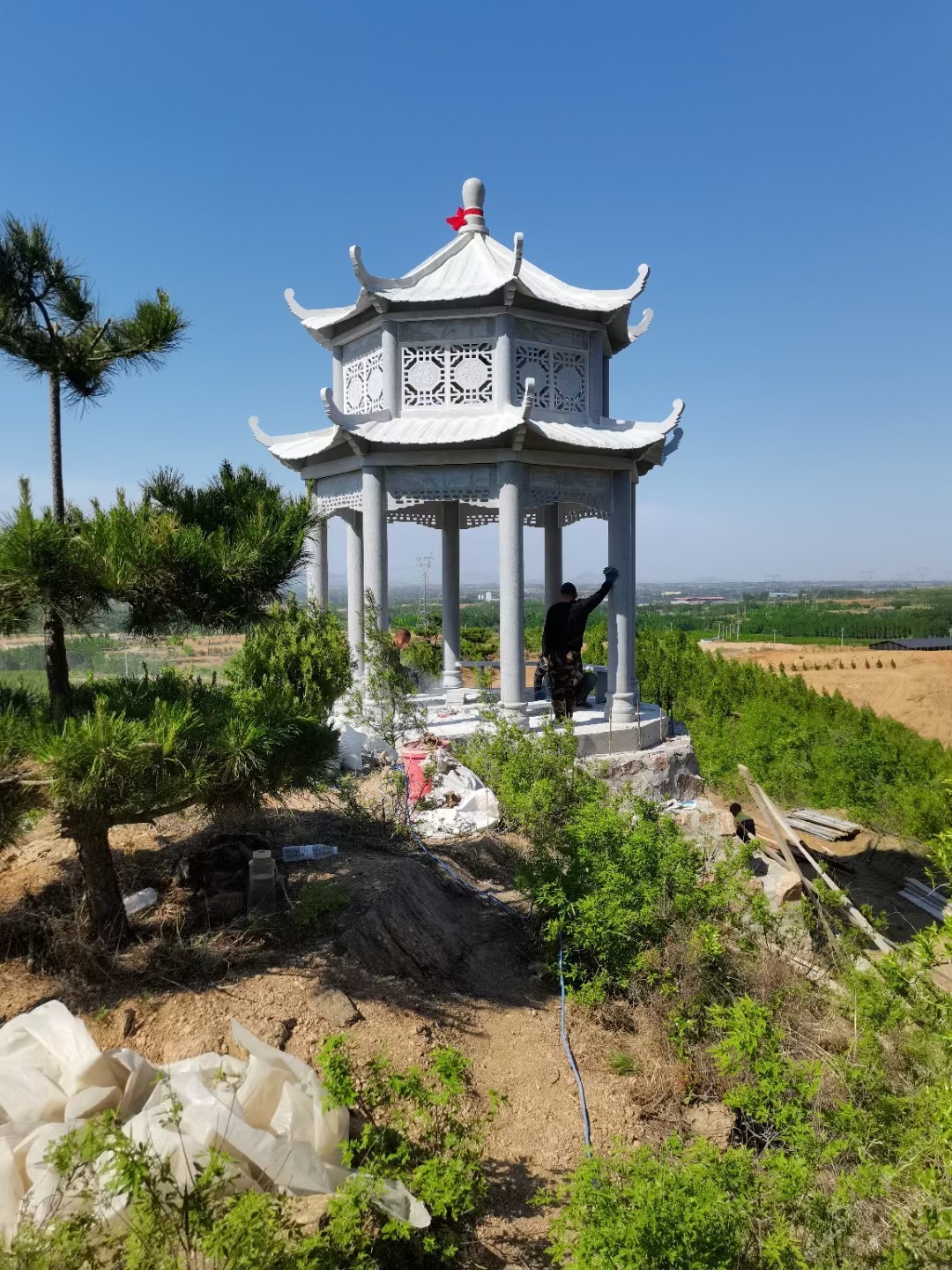 發(fā)布信息: 石雕涼亭是傳統(tǒng)技藝與自然景觀的巧妙融合。此款為雙層八角石雕涼亭,以石材精心雕琢而成,飛檐翹角的造型中式建筑的古典美感。 石材的特質使其堅固耐久,能在戶外環(huán)境中長久保存。亭身的鏤空雕刻、紋飾細節(jié)精致入微,既體現(xiàn)了工匠的高超技藝,又為景觀增添了藝術氣息。它立于山間,既是人們登高休憩、觀賞風光的好去處,也是石雕藝術與建筑功能、自然環(huán)境結合的典范。