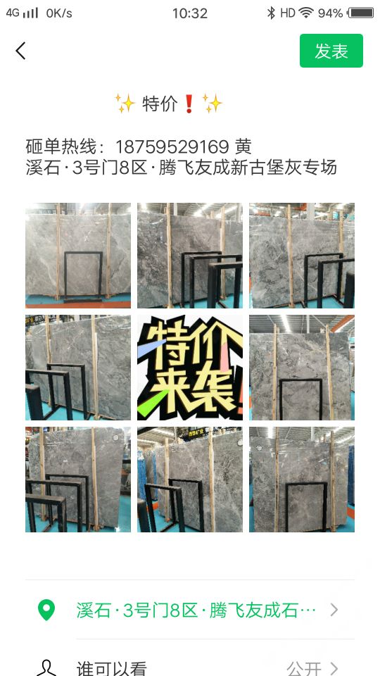 發(fā)布信息: 感恩回饋新老客戶 場上部分板面特價出售 溪石三號門八區(qū)騰飛友成新古堡灰專場 ?18759529169