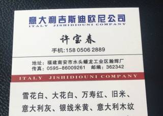 意大利吉斯迪歐尼公司主營(yíng)產(chǎn)品:舊米黃,大花白(大理石),銀絲米黃2,萬(wàn)壽紅,帝諾米黃,意大利灰1企業(yè)地址:福建南安水頭鎮(zhèn)蟠龍工業(yè)區(qū)瀚輝廠