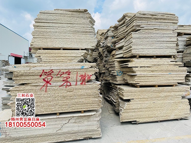 隨州黃金麻石材-隨州白麻花崗巖-光面黃金麻-燒面黃金麻-荔枝面黃金麻-光面白麻-燒面白麻-荔枝面白麻 隨縣三和石業(yè) 劉經(jīng)理 18100550054(微信同號(hào))專業(yè)隨州黃金麻/白麻供應(yīng)商廠家,工廠位于隨州石材工業(yè)園;專注于別墅幕墻干掛工程及園林地鋪石材加工,實(shí)力工廠,廠礦一體;主營:隨州黃金麻、隨州白麻、湖北黃金麻、湖北白麻、黃銹石、白銹石、黃色麻石、白色麻石、光面黃金麻、燒面黃金麻、荔枝面黃金麻等花崗巖;同等品質(zhì)基地批發(fā)價(jià)格更低,隨縣三和石業(yè)有限公司歡迎你來電溝通洽談業(yè)務(wù)!